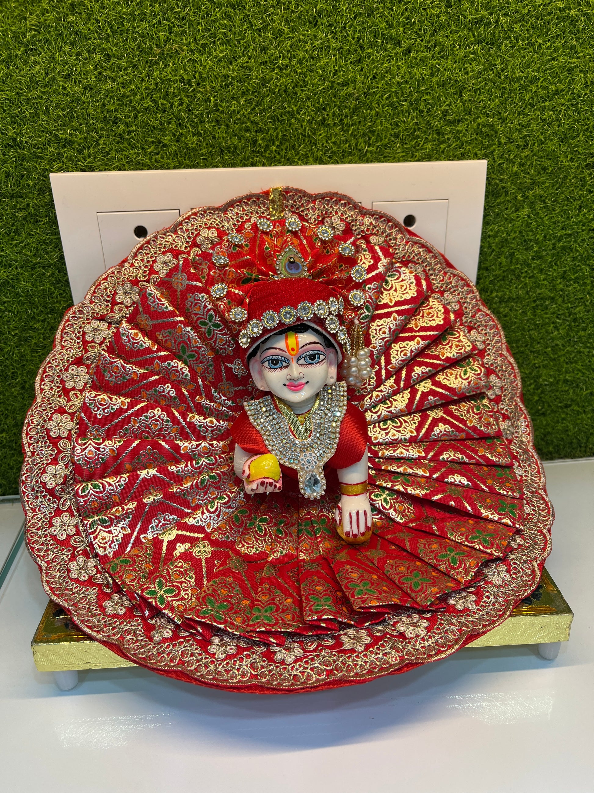Heavy Lace Red Colour Poshak for Laddu Gopal Ji